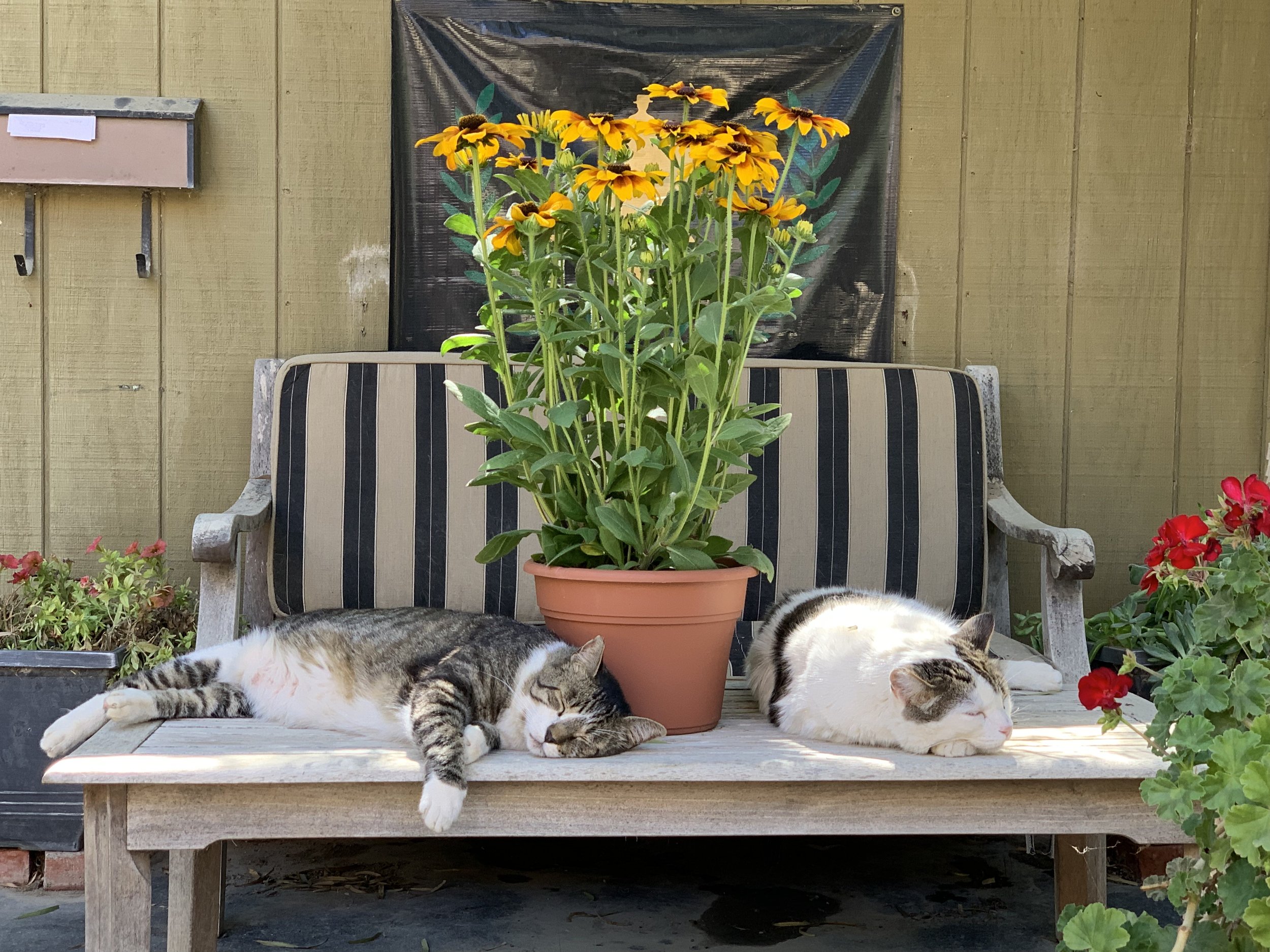 The spectacular drought tolerant landscape emphasizes California native plants and ornamental trees, designed by Amy Nettleton's Elemental Landscapes, and installed 2007-2009. Now fully mature, we are carefully restoring overgrown areas, as well as trimming the 200 gorgeous trees that gracefully shade our world and provide habitat for birds and small creatures.