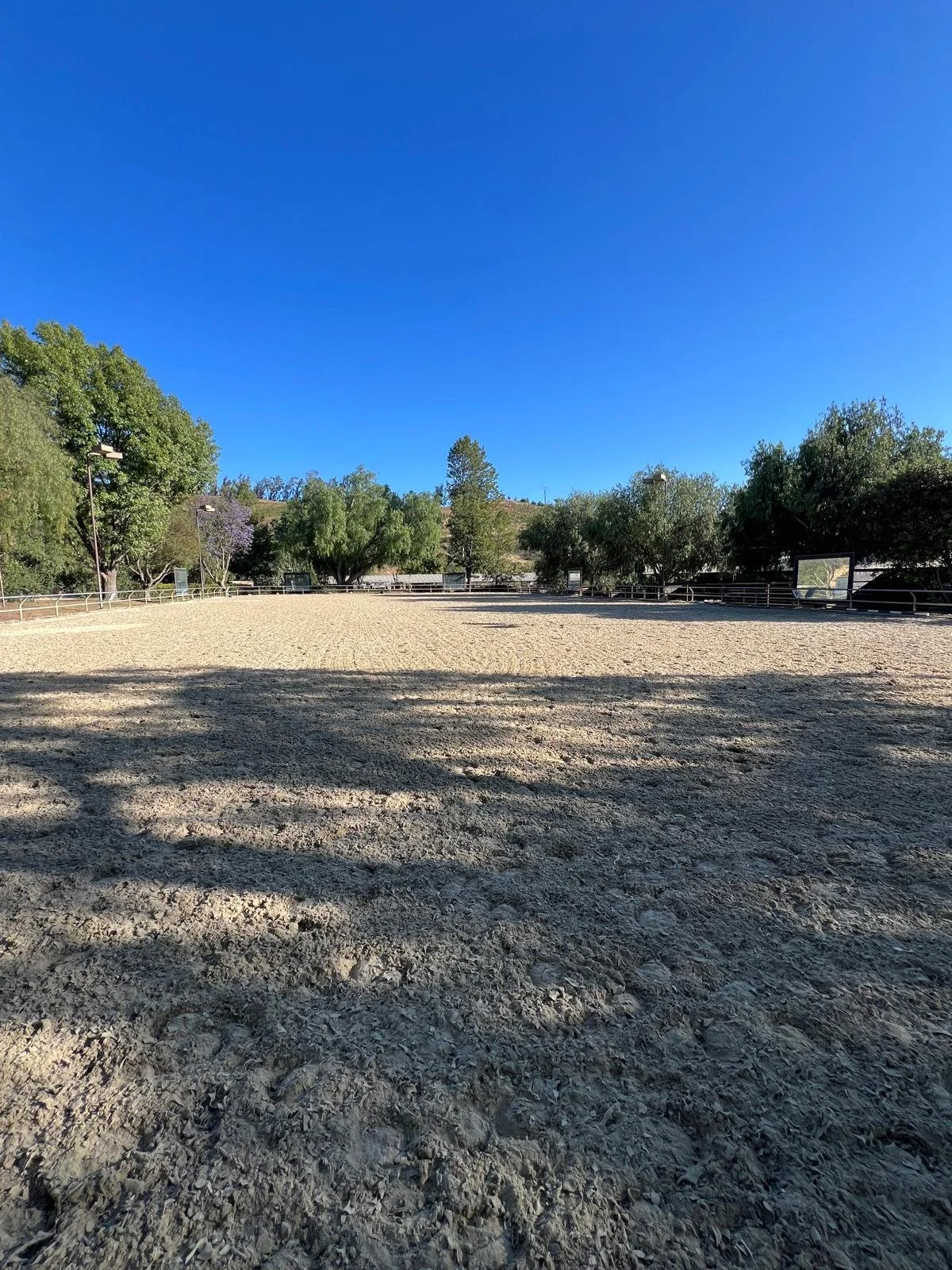 200’ x 300’ – can hold two large courts side by side for dressage shows, with room for outside tracks, shaded gallery